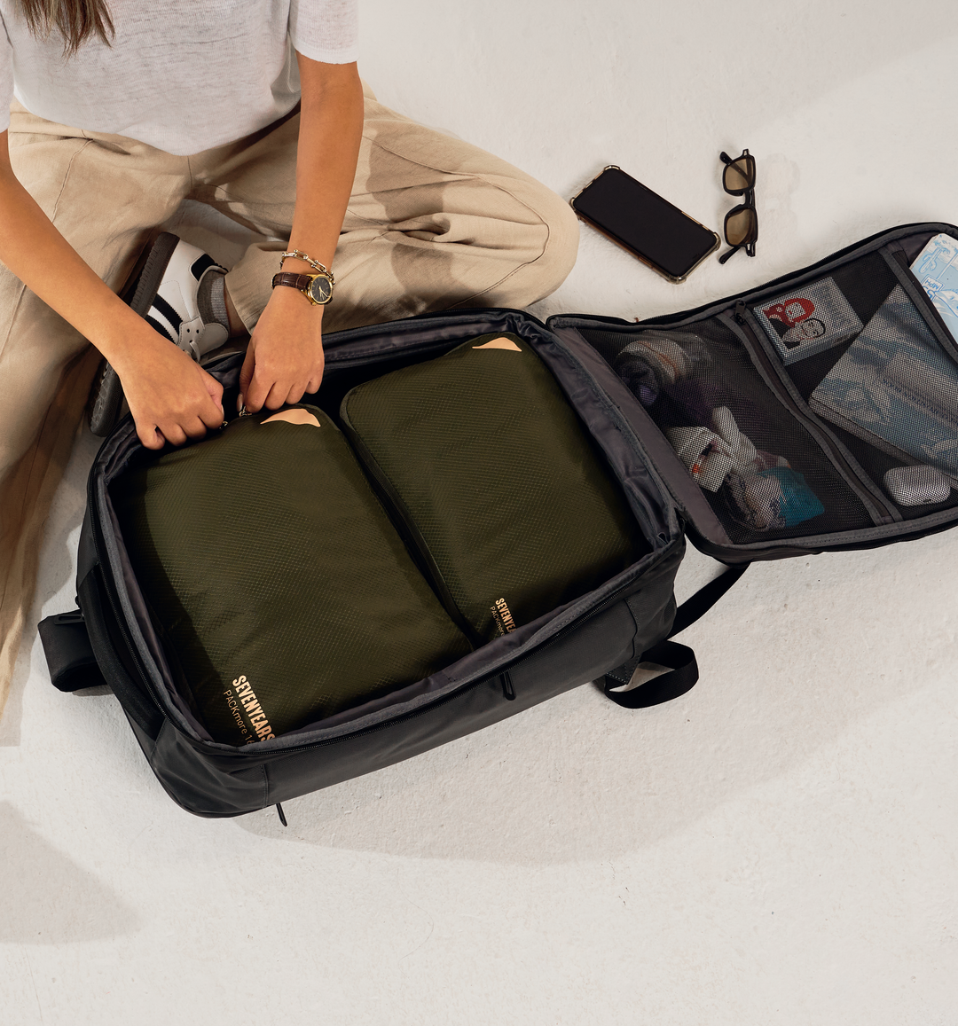 Compressible Packmore cubes, reducing precious space inside your backpack by 30%
